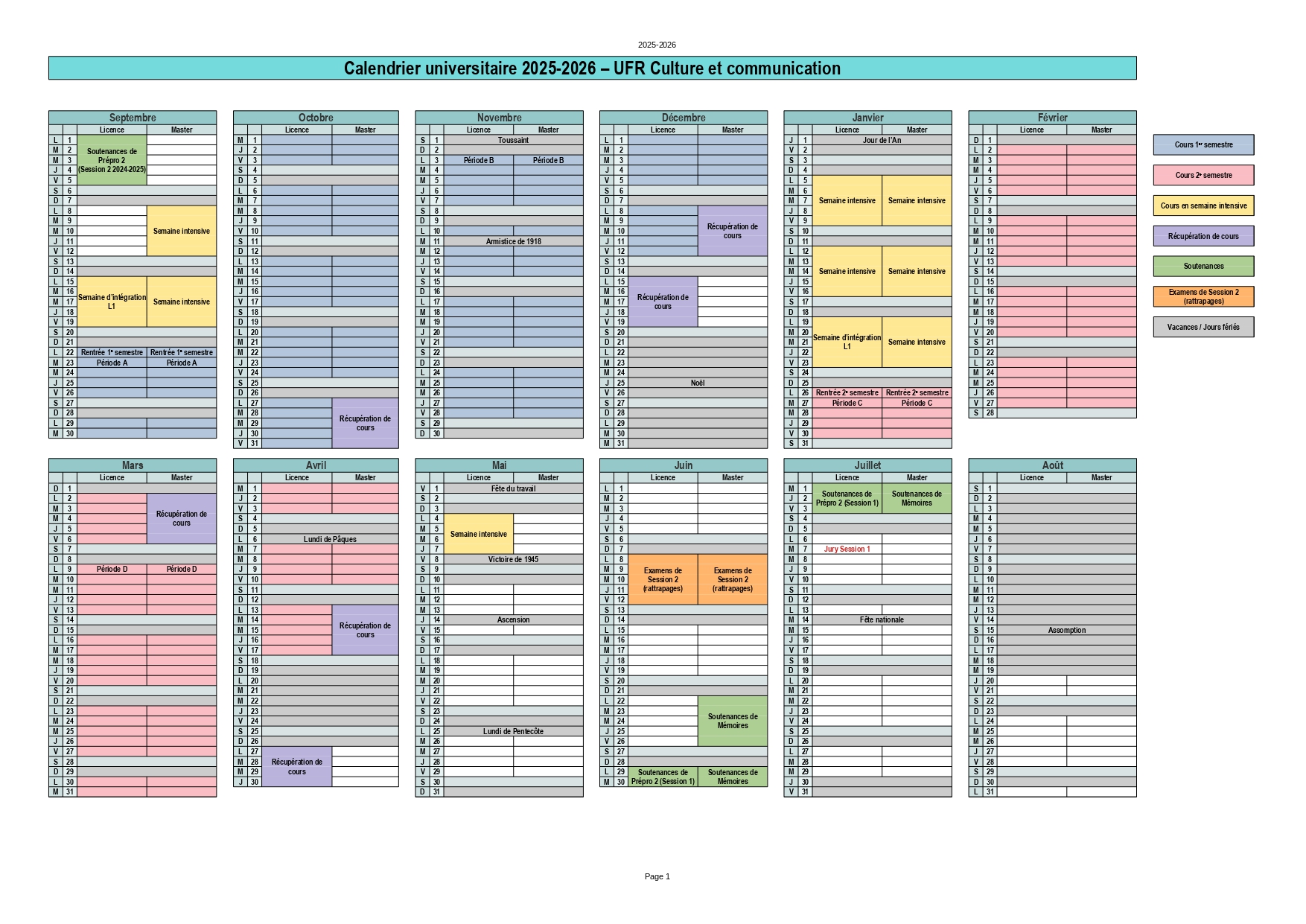 🗓 Calendrier universitaire 2025-2026 – UFR Culture et communication : Calendrier UFR CC 25-26 🗓 Calendrier universitaire 2024-2025 – UFR Culture et communication : Calendrier UFR CC 24-25